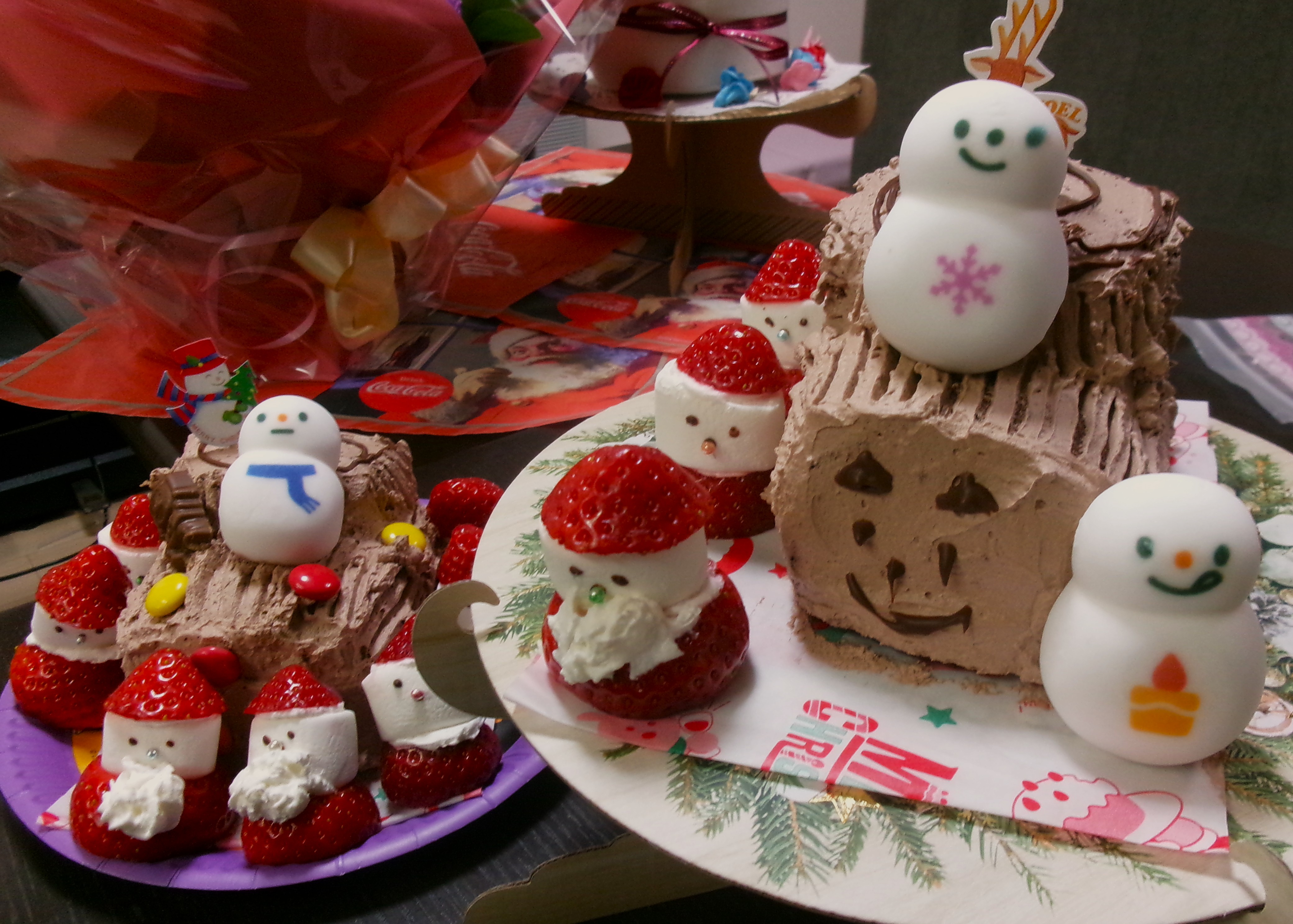 とてもかわいいブッシュドノエルや苺サンタさんが出来上がりました(*´▽`*)
