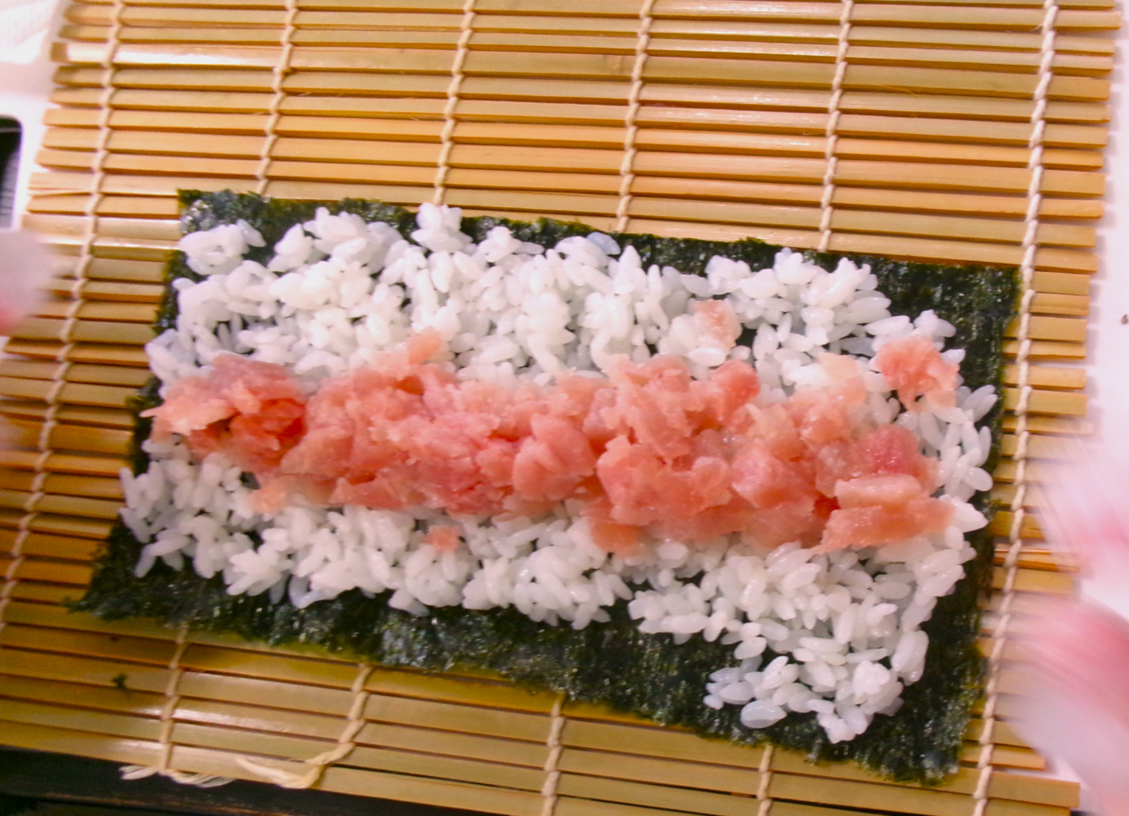 そして今年は入居者さんの大好きなサーモンを使って恵方巻を作りました!