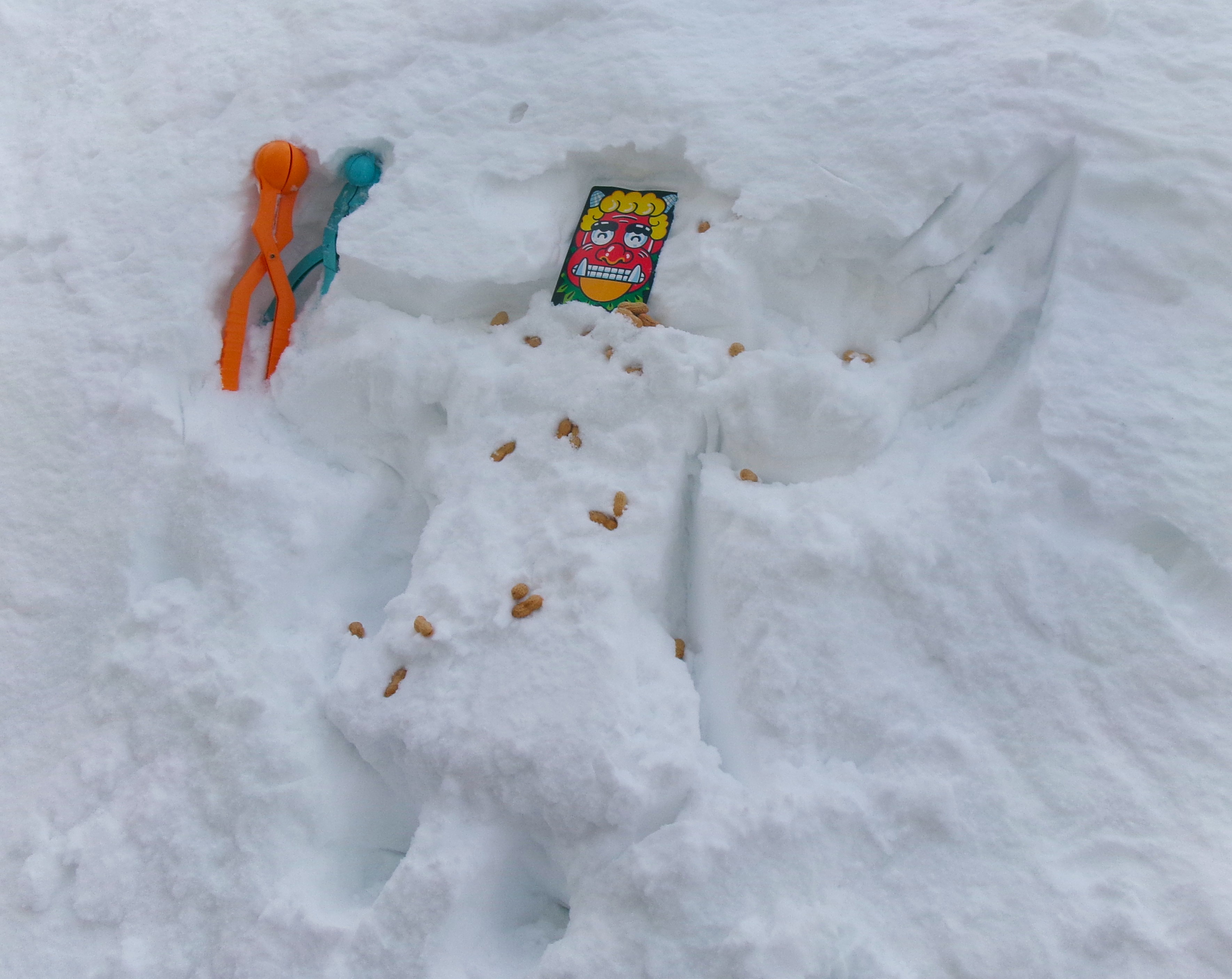 今年は沢山積もった雪に鬼のお面を被ってもらい、豆をぶつけました(笑)