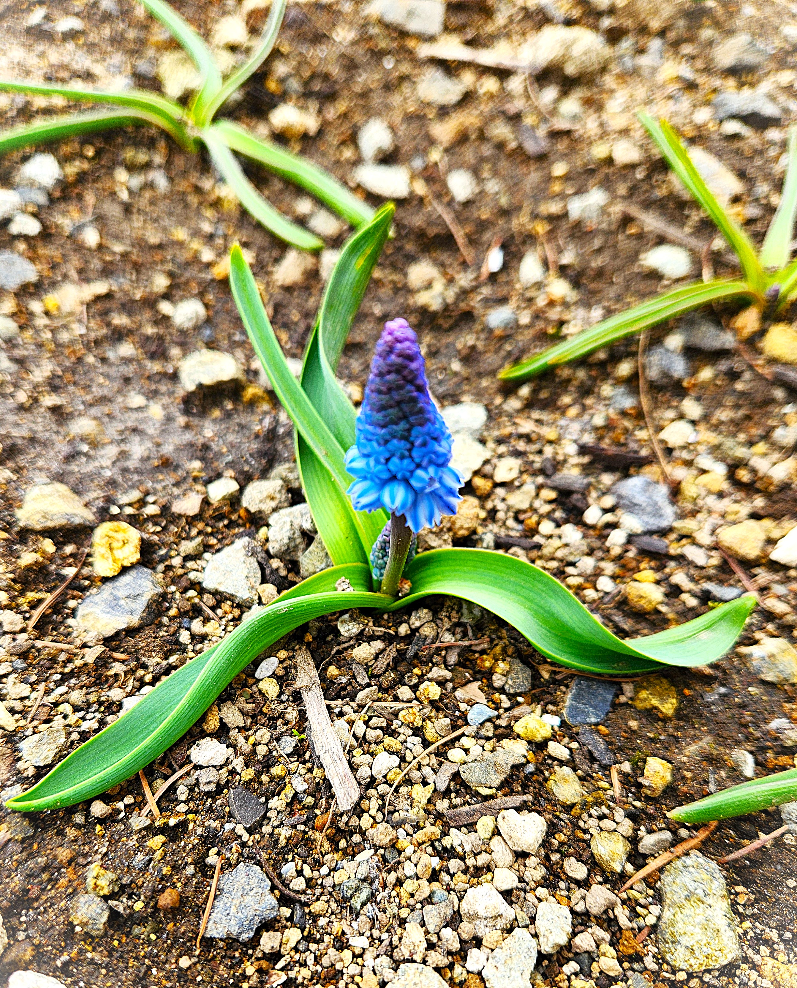 今まで青色のムスカリはなかなか生えてこなかったのですが、今年は元気に育ってくれています♪